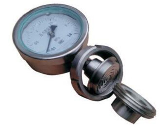 卫生型隔膜压力表是由通用型压力仪表与鬧莫隔离器组成一个系统的隔膜 压力表。具有在工艺现场装拆快捷方便.不易污染.容易清洗.安全可靠等 优点。能满足药品生产质量规范(GMP)的要求。在制药,食品、饮料.水处 理等行业对仪表卫生要求的工艺流程中得到广泛应用。